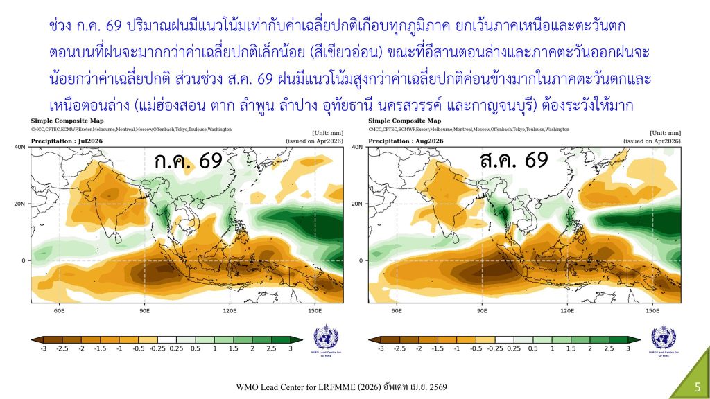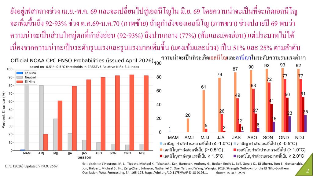 - มิ.ย. 69: เริ่มเข้าสู่เฟสเอลนีโญ ฝนอาจทิ้งช่วงในบางพื้นที่