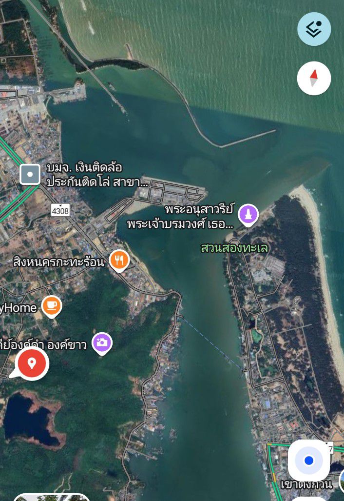 ปัจจุบันจุดระบายน้ำนี้แคบลงอย่างมาก เนื่องจากมี “เขื่อนท่าเรือน้ำลึกปากทะเลสาบสงขลา”
