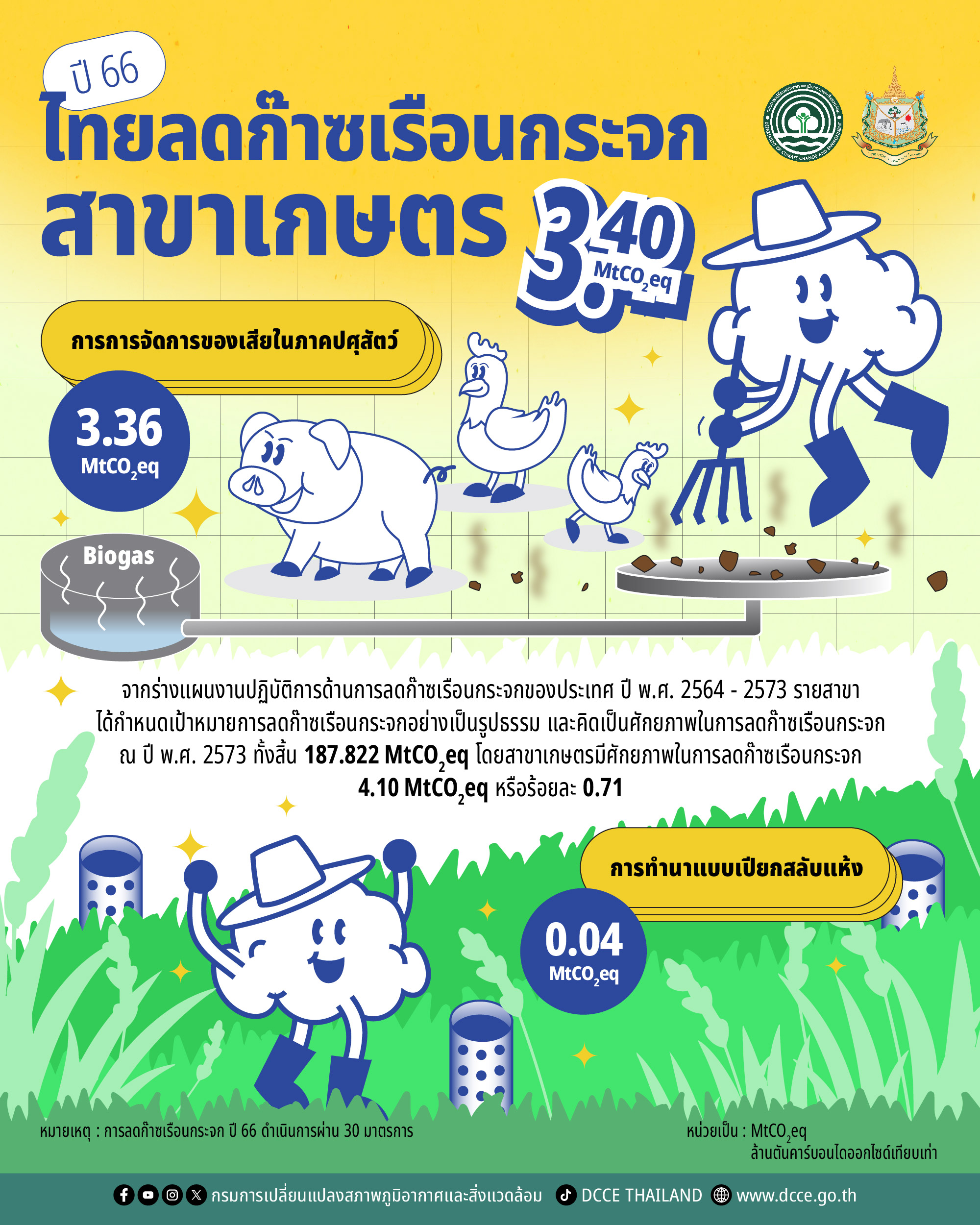 - การการจัดการของเสียในภาคปศุสัตว์ 3.36 MtCO2eq
