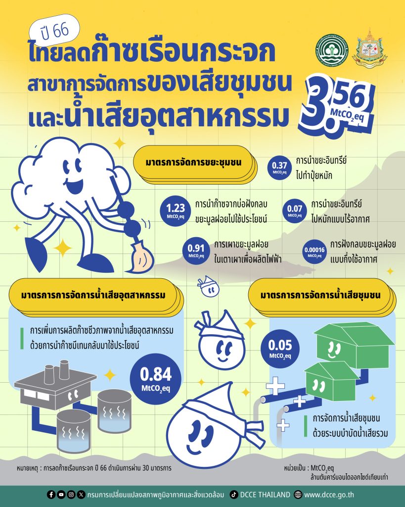 - การจัดการน้ำเสียชุมชนด้วยระบบบำบัดน้ำเสียรวม 0.05 MtCO2eq