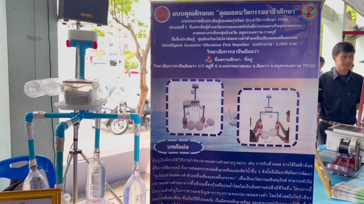 ไฮไลต์ที่น่าสนใจคือ หุ่นอัจฉริยะไล่ปลาหมอคางดำด้วยคลื่นเสียงและคลื่นกระทบ ผลงานของนักศึกษา วิทยาลัยการอาชีพอัมพวา ที่นำปัญหาการระบาดของปลาหมอคางดำ ที่นักศึกษาได้รับผลกระทบ ได้รับรับความเดือดร้อนจากปลาหมอคางดำระบาดในบ่อปลา จึงพัฒนาหุ่นไล่ปลาหมอคางดำในบ่อ โดยไม่เป็นอันตรายต่อสิ่งมีชีวิตอื่นๆ ซึ่งสามารถช่วยลดปัญหาการรุกรานของปลาหมอคางดำ โดยใช้งบประมาณเพียง 2,000 บาท