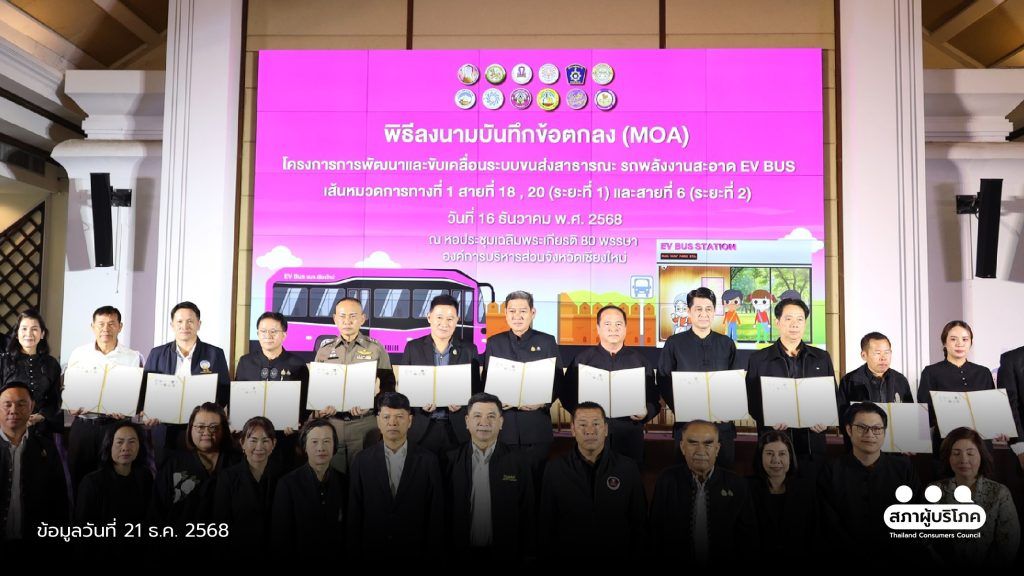 เชียงใหม่เดินหน้าสู่ “เมืองที่เป็นธรรม” อบจ. จับมือ 11 ภาคีเครือข่าย ลงนาม MOA ขับเคลื่อนรถเมล์ไฟฟ้า EV Bus ค่าบริการประหยัดไม่เกิน 20 บาท ตั้งเป้าแก้ปัญหารถติดและมลพิษ พร้อมชูสิทธิการเดินทางที่ทุกคนเข้าถึงได้อย่างเท่าเทียม