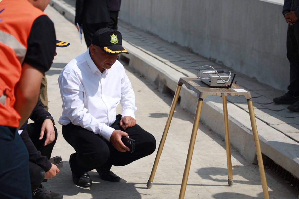 จุดแรกในการตรวจเยี่ยมคือ โครงการก่อสร้างทางลอดแยกนครราชสีมา ซึ่งเป็นโครงการสำคัญในการแก้ปัญหาจราจรหนาแน่นบริเวณจุดตัดถนนมิตรภาพ ก่อสร้างคืบหน้าไปแล้วกว่า 80% ผลการตรวจ แม้จะยังพบปัญหาฝุ่นอยู่บ้าง แต่เนื่องจากงานโครงสร้างหลักส่วนใหญ่เสร็จสิ้นแล้ว ปริมาณฝุ่นจึงลดน้อยลงกว่าช่วงแรก อย่างไรก็ตาม รองผู้ว่าฯ ได้กำชับให้ปฏิบัติตามแนวทางลดฝุ่นอย่างเคร่งครัดจนกว่าจะส่งมอบงาน