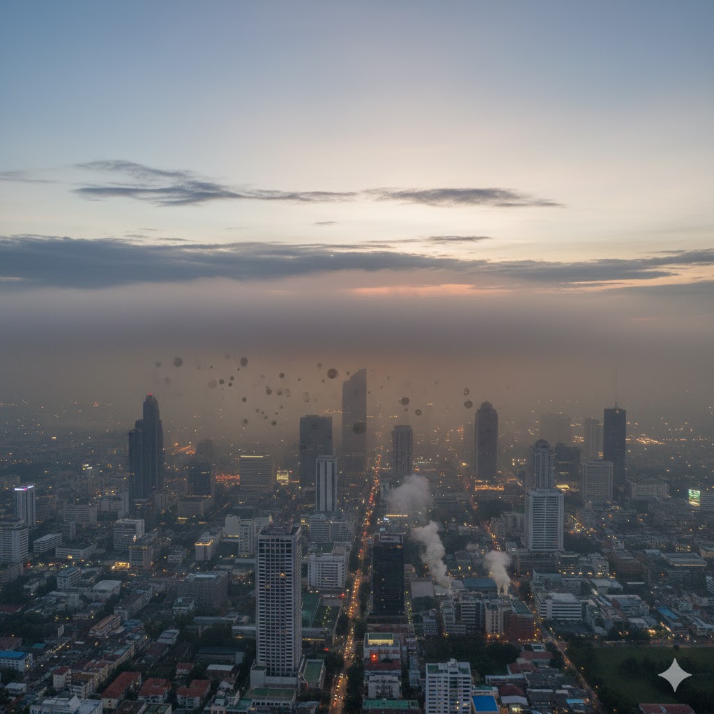 ในช่วงรอยต่อของฤดูกาล หรือช่วงที่มวลอากาศเย็นแผ่ซ่านปกคลุมประเทศไทย เรามักจะเห็นภาพท้องฟ้าที่ขุ่นมัวคล้ายมีหมอกหนาปกคลุมเมือง แต่ในความเป็นจริง นั่นอาจไม่ใช่หมอกที่สะอาดเสมอไป แต่มันคือ “ค็อกเทลของมลพิษ” ที่ถูกกักขังไว้ด้วยปรากฏการณ์ทางอุตุนิยมวิทยาที่เรียกว่า “อุณหภูมิผกผัน” (Temperature Inversion) หรือที่เรียกกันติดปากว่า “ภาวะฝาชีครอบ”