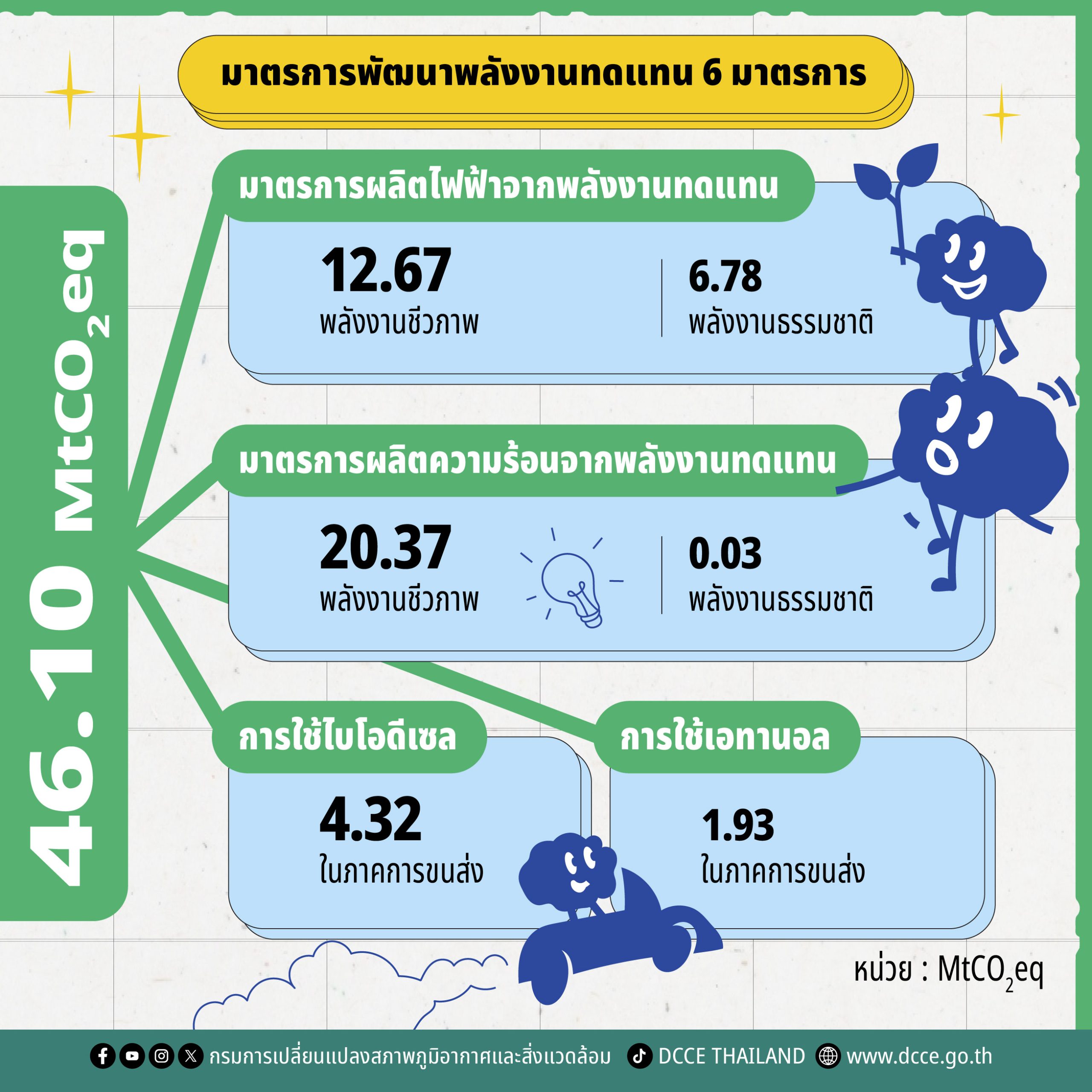 มาตรการพัฒนาพลังงานทดแทน 6 มาตรการ = 46.10 MtCO2eq