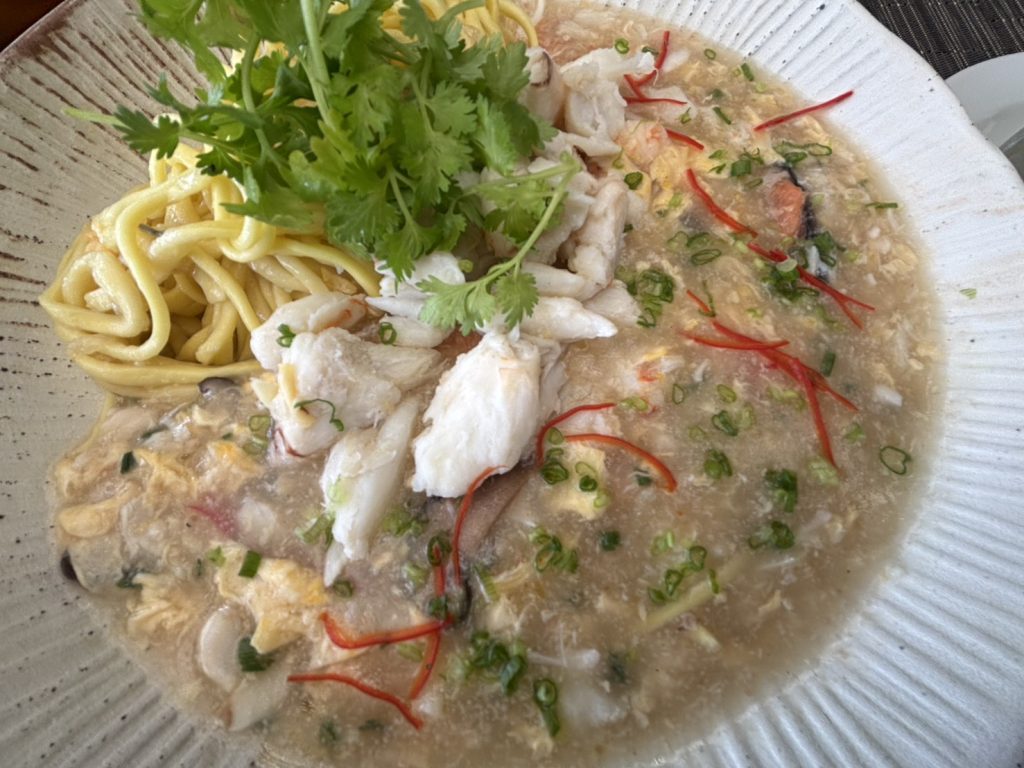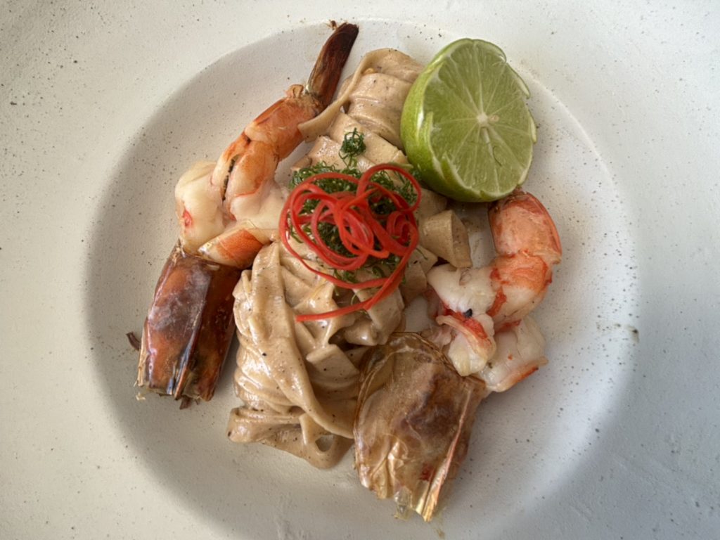 อีกเมนูที่มิกซ์แนะนำคือ หมี่น้ำหลอ อาหารประจำถิ่นของคนตรัง ซึ่งเขาให้ยายสอนให้ทำ จนเชฟทำได้ออกมารสใกล้เคียงที่สุด 99%